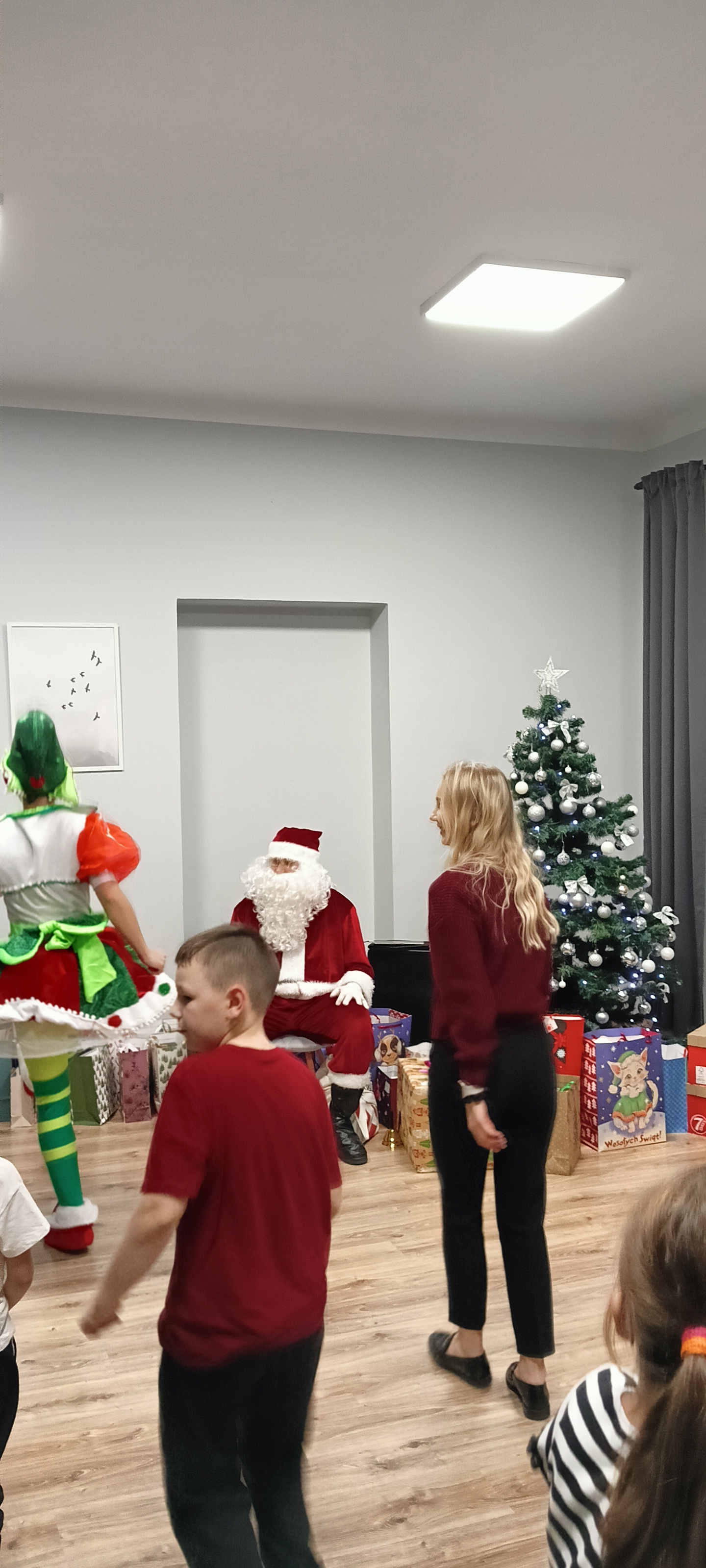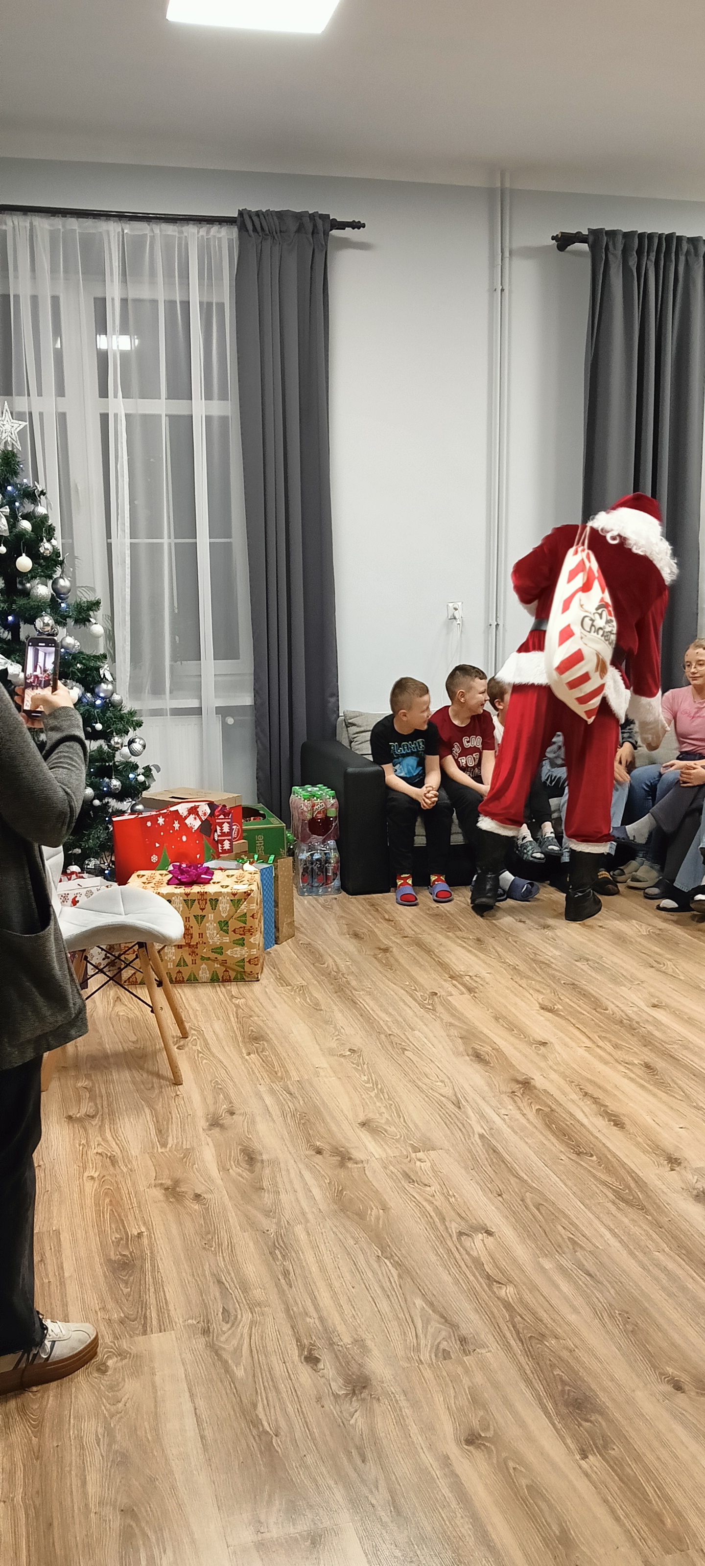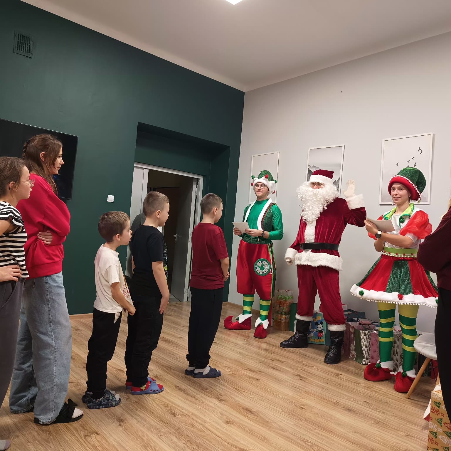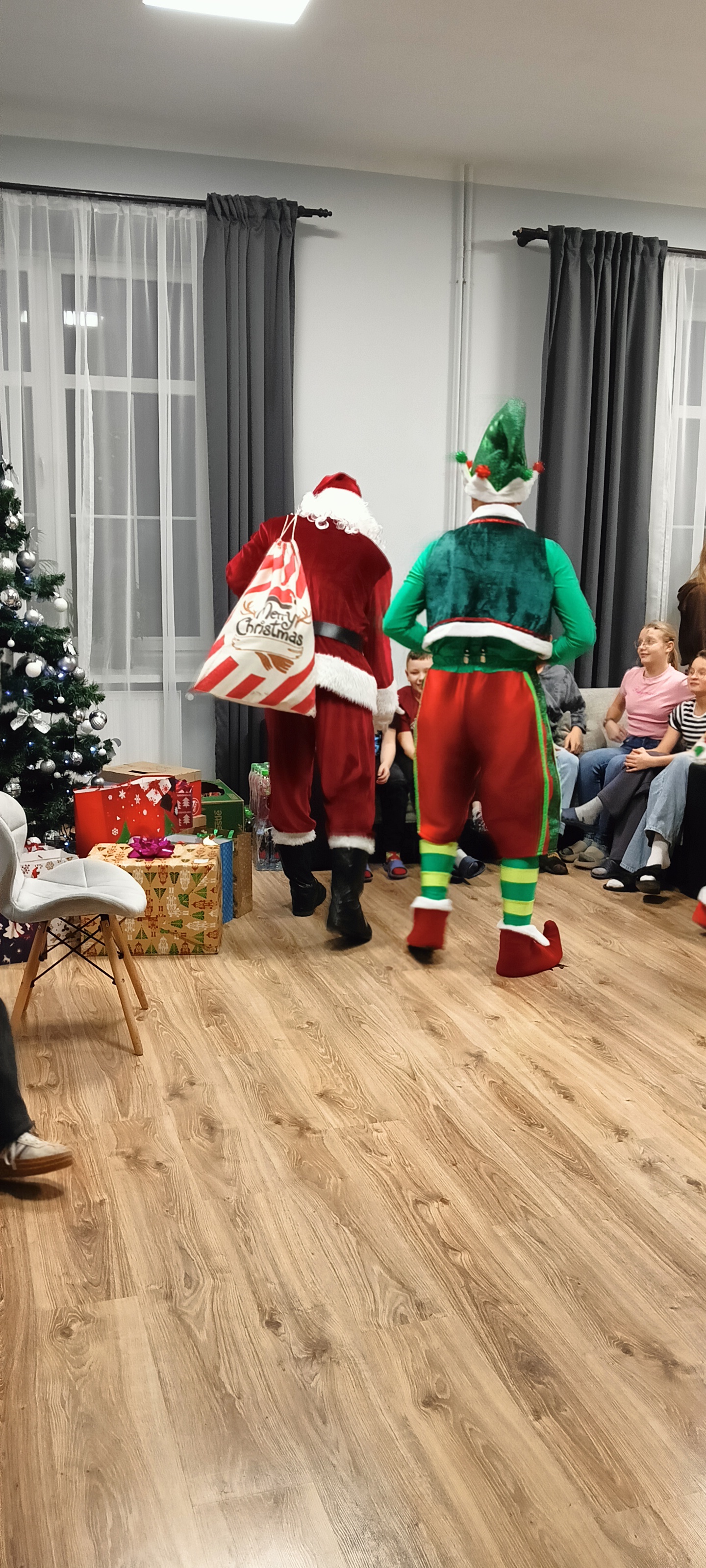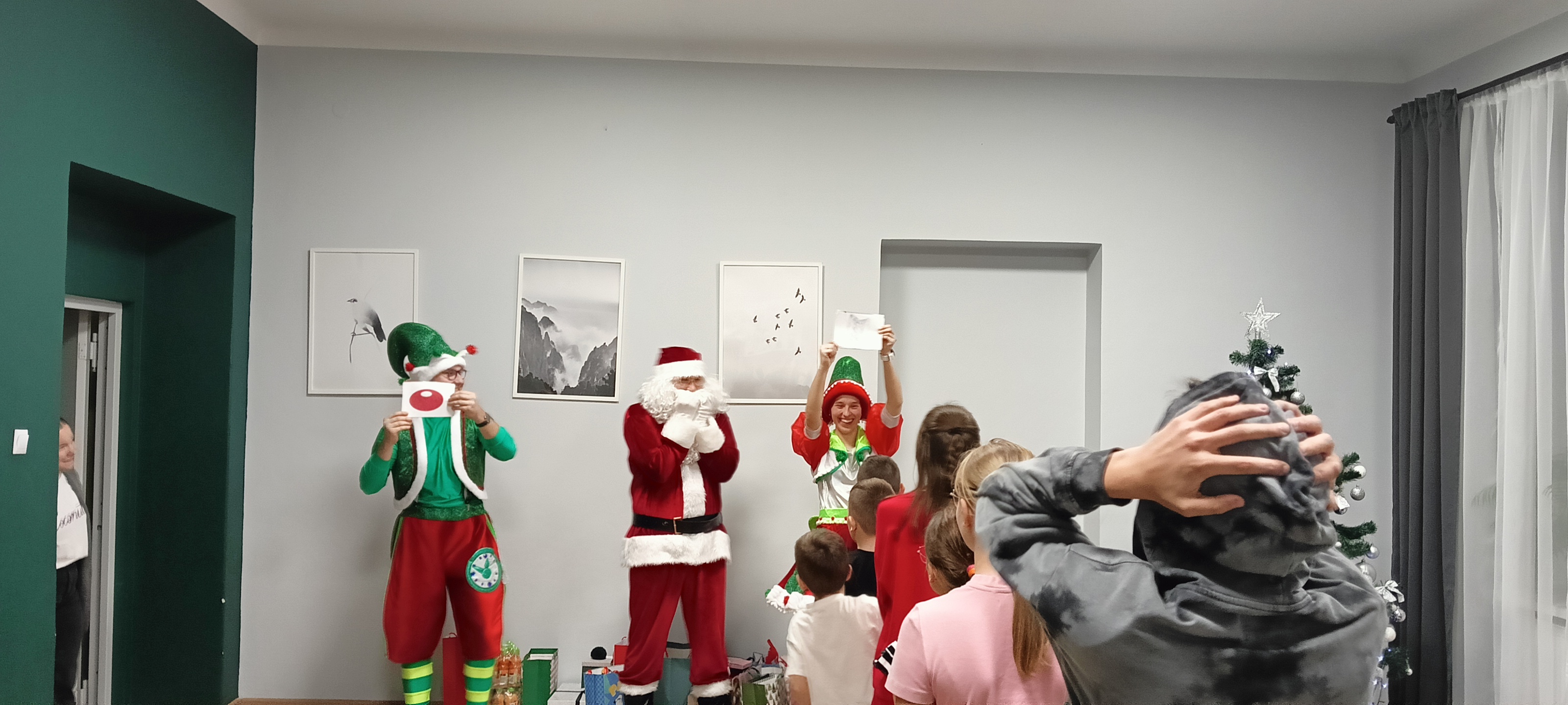10 grudnia nasi podopieczni zostali odwiedzeni przez grupę mieszkańców Pińczowa – panią Emilię wraz z zespołem Duda Band, którzy zapewnili dzieciom mikołajkowe animacje. Goście przygotowali dla każdego dziecka oryginalny, spersonalizowany prezent wraz ze słodyczami, a także przekazali Placówce akcesoria gospodarstwa domowego - dwie frytkownice oraz żelazko. Pani Emilii towarzyszył Święty Mikołaj oraz dwa Elfy, którzy wspólnie z dziećmi śpiewali i tańczyli. Dzięki zaangażowaniu gości na twarzach wychowanków pojawiło się wiele uśmiechu, a zimowy wieczór upłynął w wyjątkowo radosnej atmosferze.