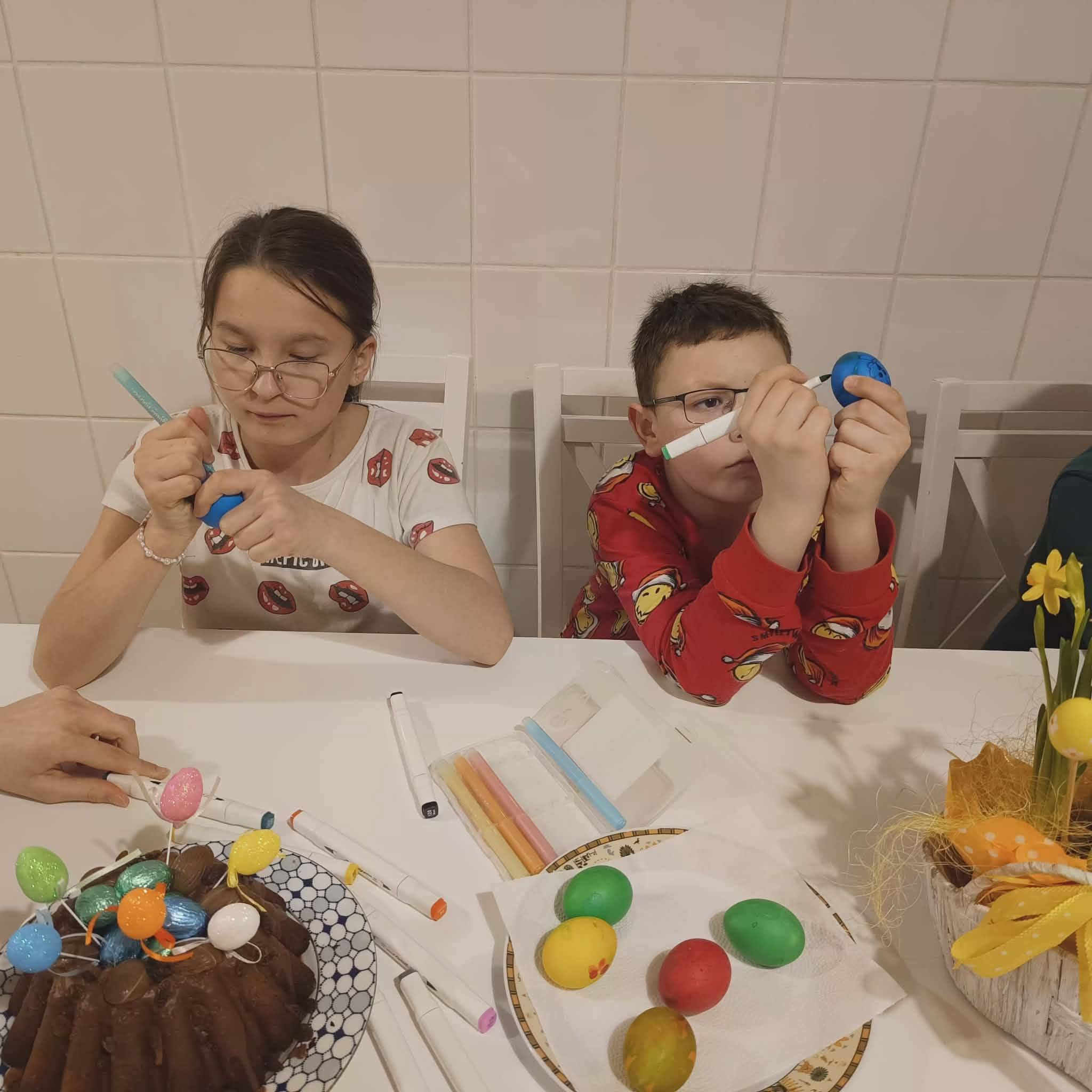 Nie zabrakło także kreatywnych zajęć – dzieci z zaangażowaniem malowały kolorowe pisanki, rozwijając swoją wyobraźnię i zdolności plastyczne.